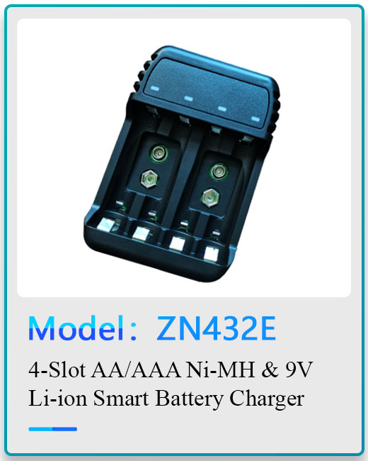 1. 1.2V AA/AAA Ni-Cd, Ni-MH & 9V Li-ion batteries.